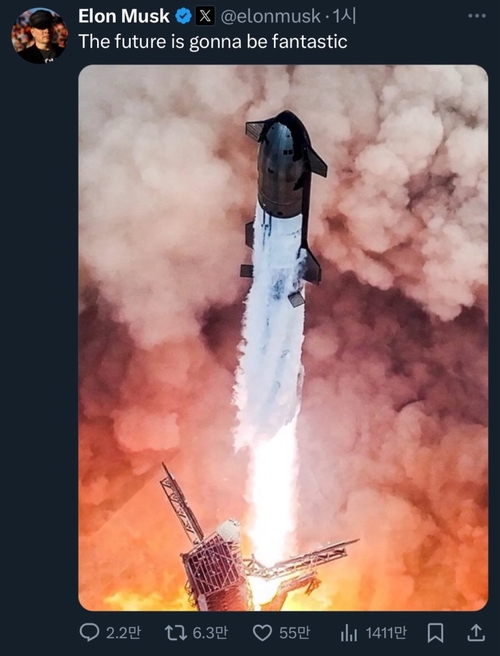 머스크가 “미래는 환상적일 것”이라며 기쁜 마음을 표현 [사진=일론 머스크 X]